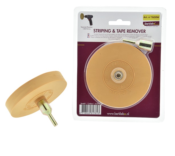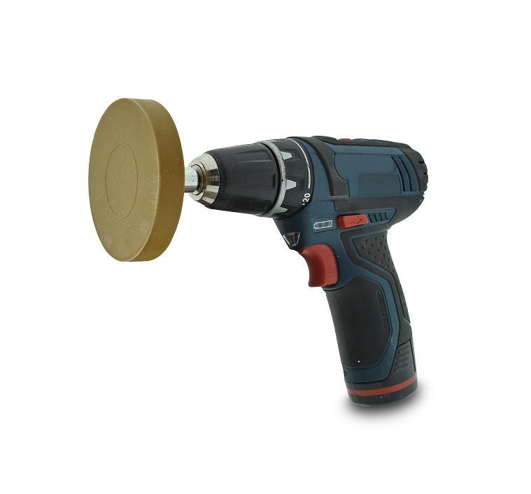Kunststof draaischijf voor het verwijderen van lijmresten op carrosserie. De draaischijf kan eenvoudig geplaatst worden op een boormachine en verwijdert de lijmresten zonder de lak van carrosserie te beschadigen.